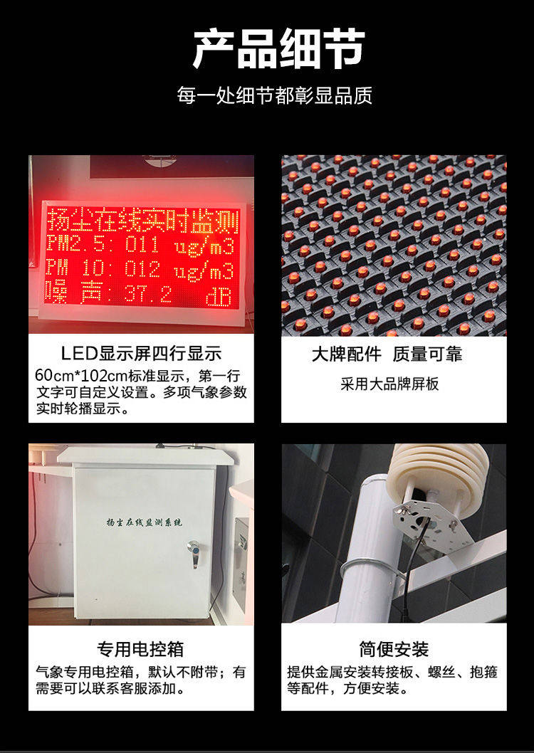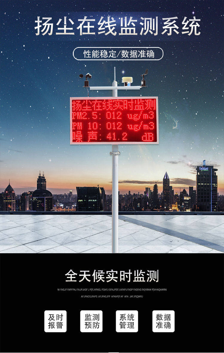 扬尘在线监测系统主要用于建筑工地、旅游景区、道路施工、城市广场、高档小区、气象站、隧道地铁站等。本系统能够实现检测现场PM2.5,PM10,噪声,温度,湿度,风向,风速等参数,实时传输至后台管理系统,并且可配置与扬尘喷淋或者水泡设备联动,当空气悬浮物达到一定浓度时,自动开启设备。兼顾节能和环保,大大提升了管理效率,真正实现了大气污染防治的联防联控。同时具有视频叠加,本地天气预报等功能。